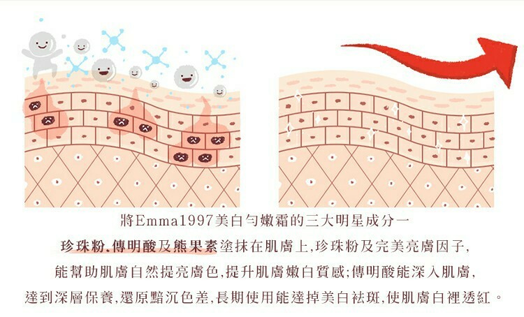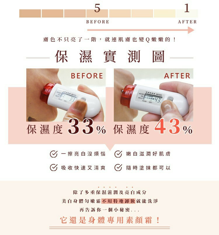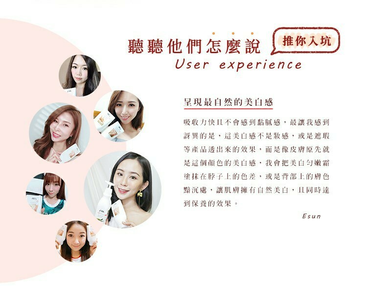 長時間 : 改善黯沉色差,持續使用,膚色越來越白皙透亮