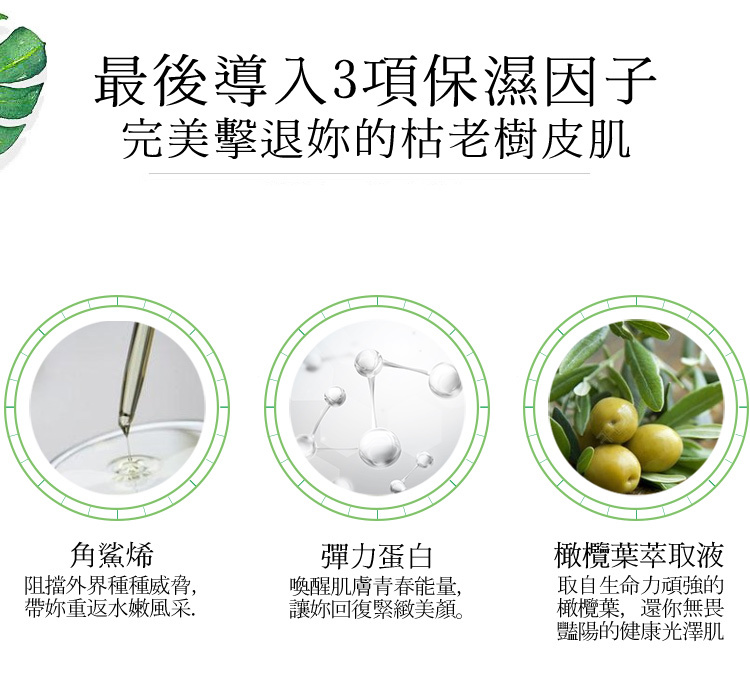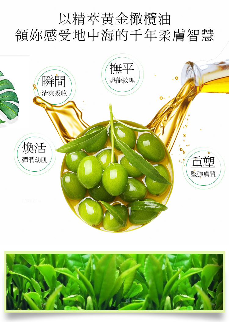 富含橄欖多酚的活萃橄欖葉成分,可修補肌膚乾損狀態