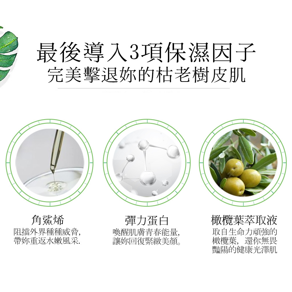 富含橄欖多酚的活萃橄欖葉成分,可修補肌膚乾損狀態